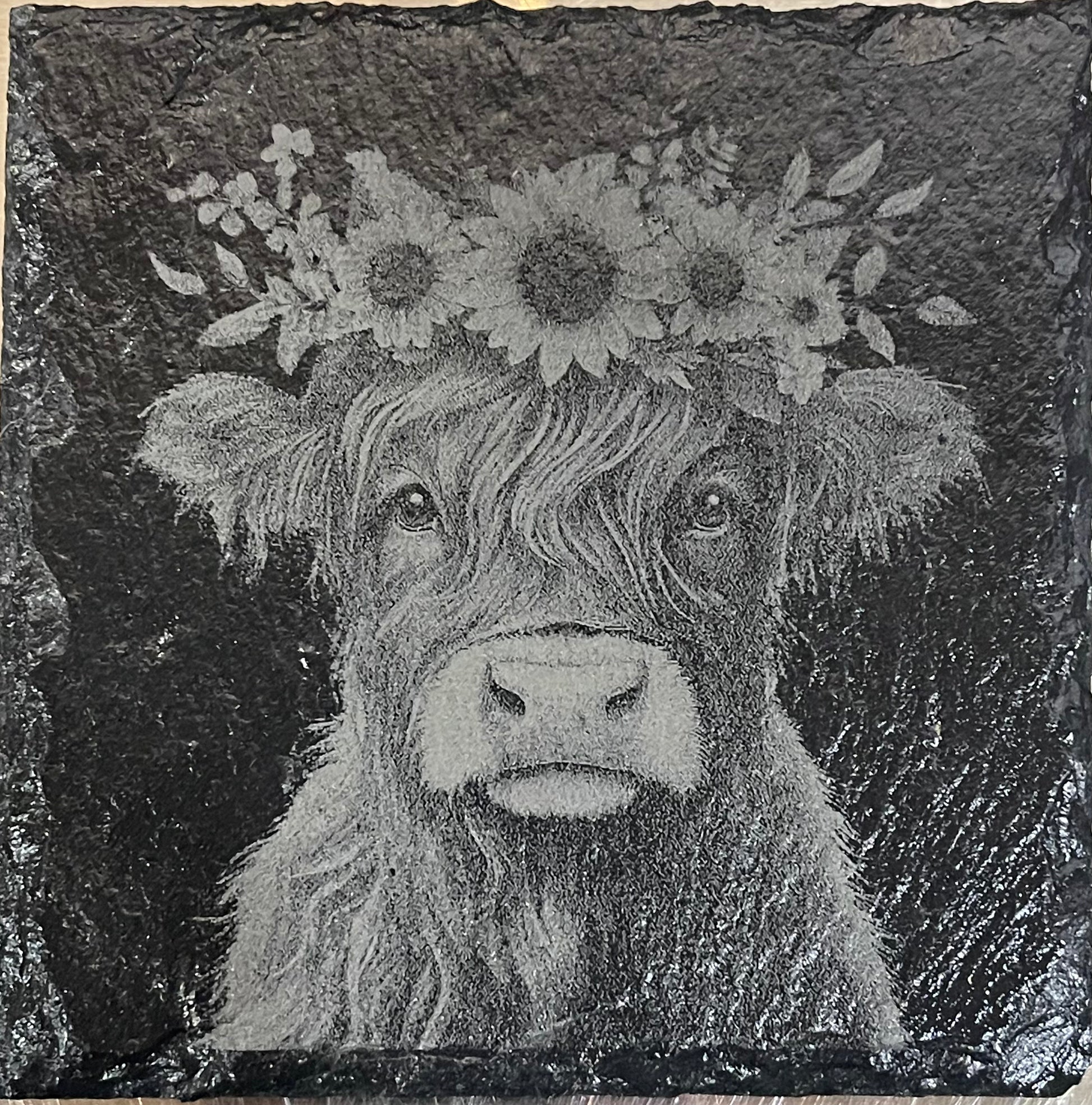 Laser Engraved Slate Coasters -Highland Cows- SET OF 4
